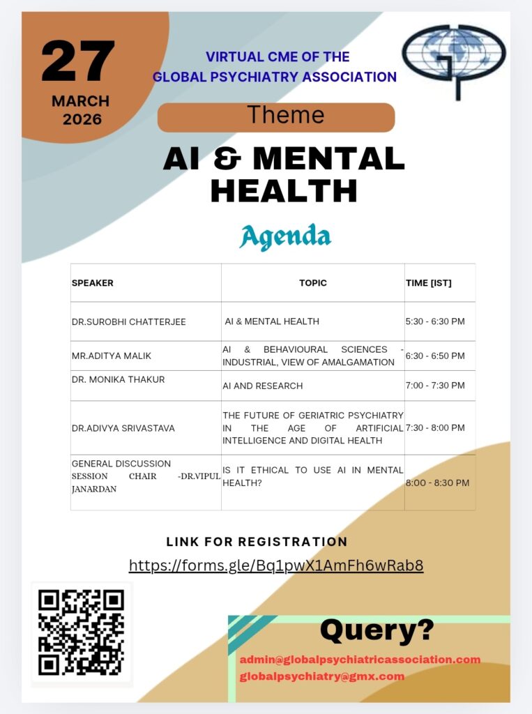 We herewith invite all mental health professionals to register and become members of the Global Psychiatric Association.